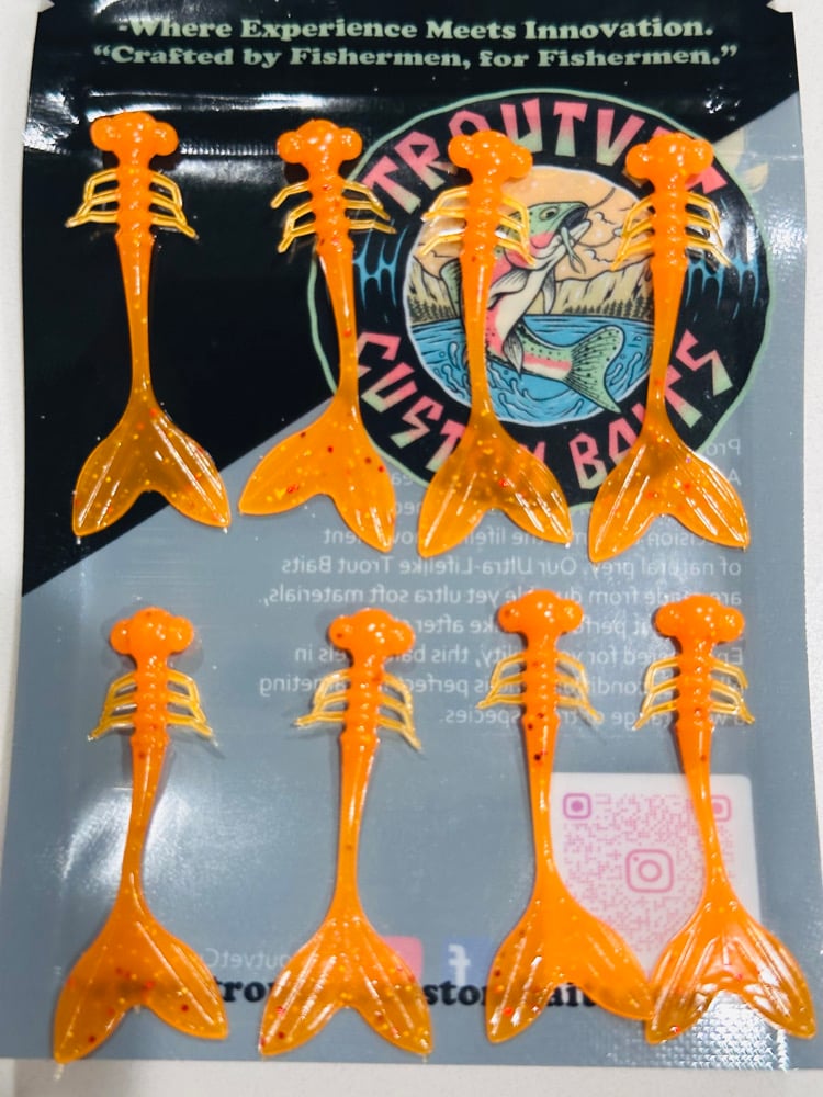 What separates the MicroByte™ from traditional micro plastics is how it behaves in the water. Instead of simply dropping or vibrating during retrieve, the MicroByte™ maintains a controlled, natural descent while producing subtle lateral glide. During pauses and light rod movement, the bait stabilizes and hovers naturally in the strike zone, allowing trout additional time to inspect and commit. Its responsive tail design creates independent kicking and flashing motion with minimal angler input, closely imitating vulnerable forage behavior.